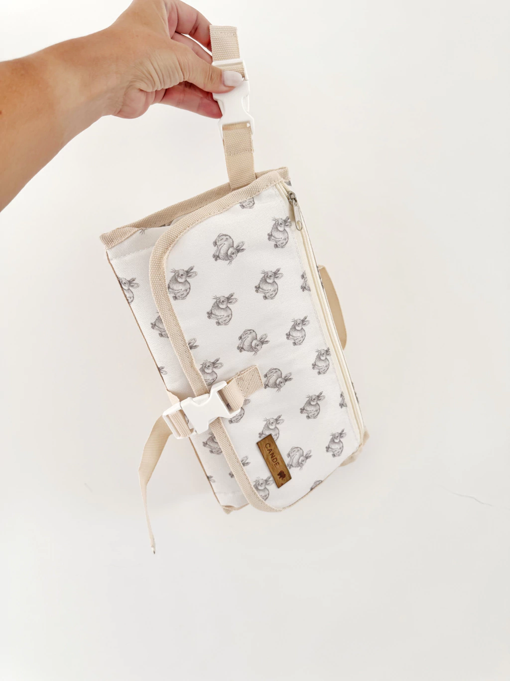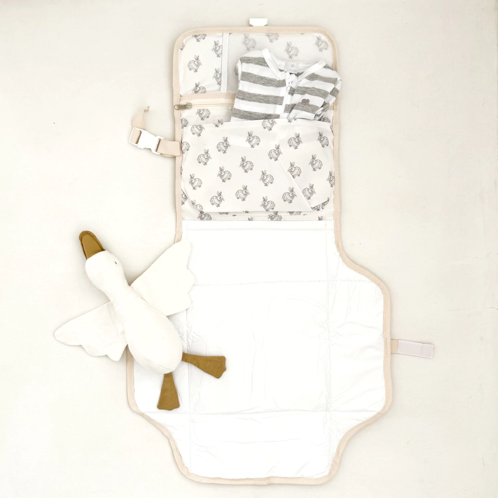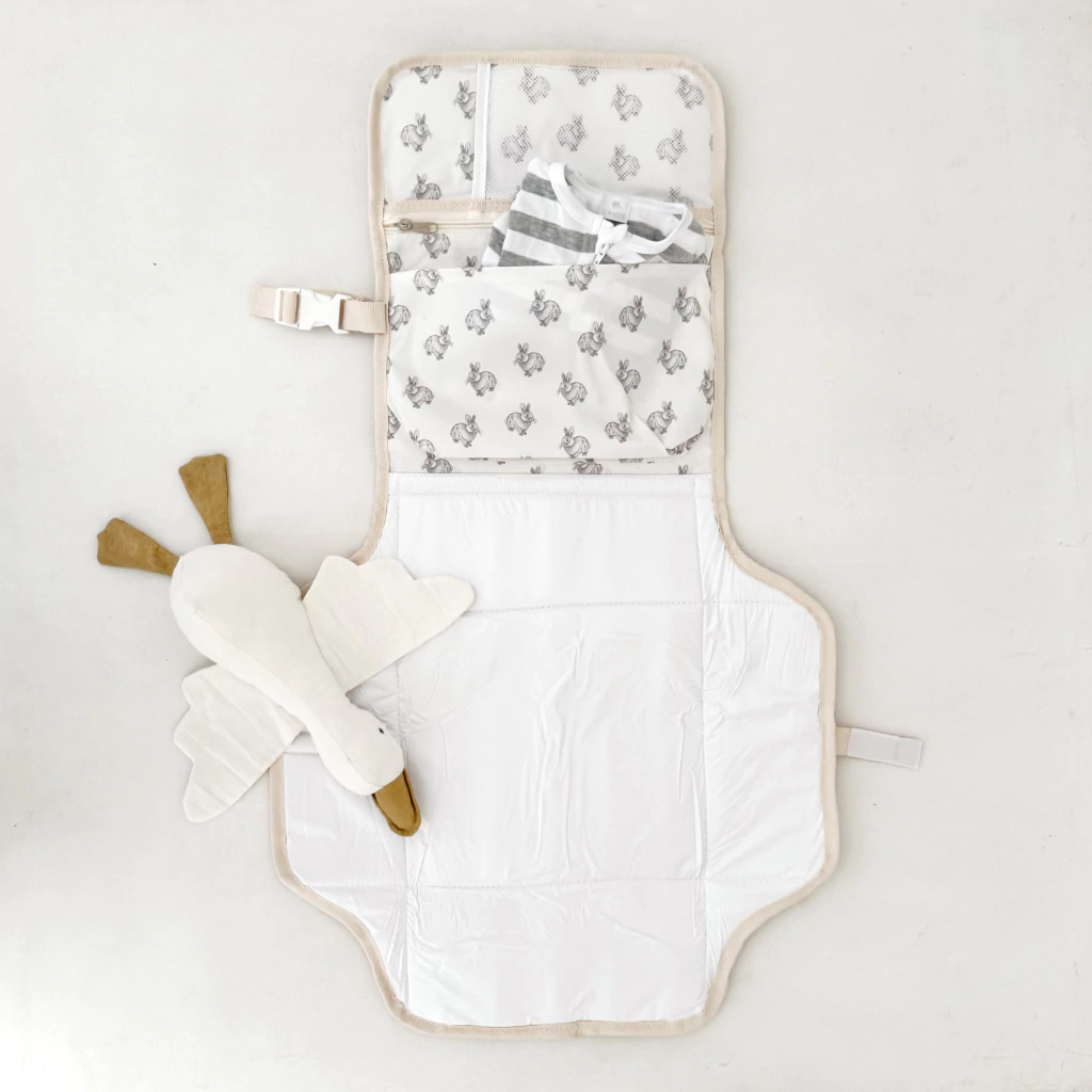 El Cambiador Rabbit es el aliado perfecto para los padres que buscan practicidad y comodidad. Confeccionado con materiales impermeables, su interior y exterior facilitan la limpieza y mantienen todo seco. Cuenta con un acolchado suave que asegura el confort del bebé en cada cambio. Además, su diseño portátil incluye una manija para colgarlo fácilmente del cochecito. Medidas: cerrado 31x21 cm, abierto 85x50 cm. Ideal para salidas organizadas y sin complicaciones.